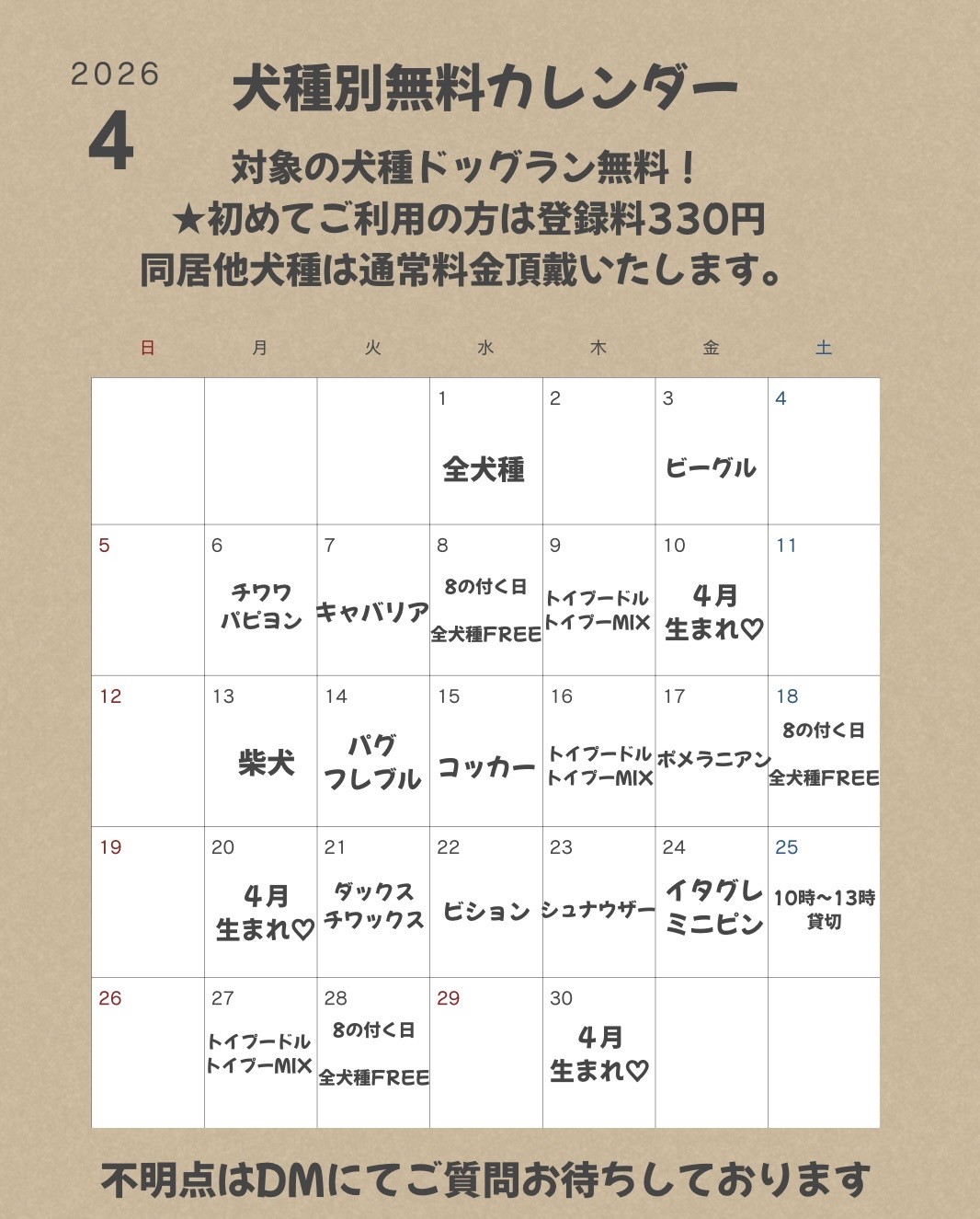 新年度、ドッグラン犬種別無料DAY開催します✨